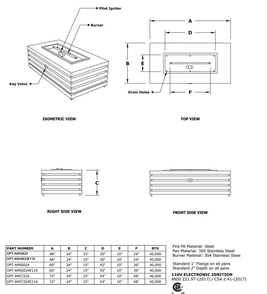 - Dimensions: Length: 72", Width: 72", Height: 17", Burning Area: 40" x 40"